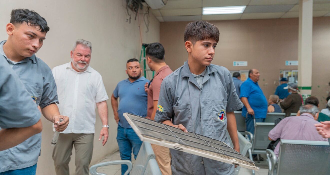 Alex Eduardo Reyes, estudiante, explicó que al realizar los trabajos de mantenimiento a los aires acondicionados del Seguro Social están ayudando a la institución a brindar un espacio climatizado a las personas. Reyes indicó que “esto nos sirven como práctica y así cuando salgamos del centro técnico realizaremos estos trabajos y podemos generar ingresos a nuestras familias”.