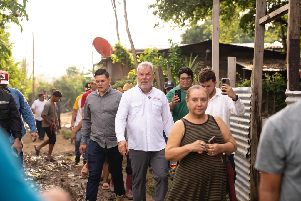 Por segundo día consecutivo, el alcalde de San Pedro Sula, Roberto Contreras, junto a los equipos de las gerencias de Infraestructura, Ambiente y Participación Ciudadana y Servicios Comunitarios, se trasladó a las zonas afectadas por las lluvias en el sector Chamelecón.