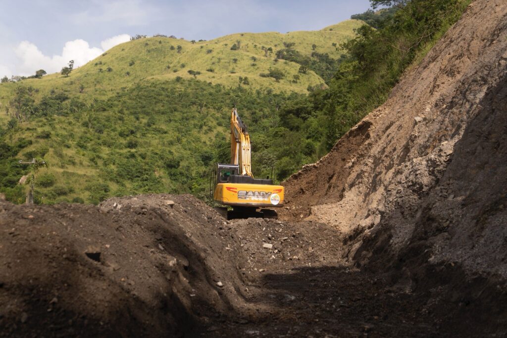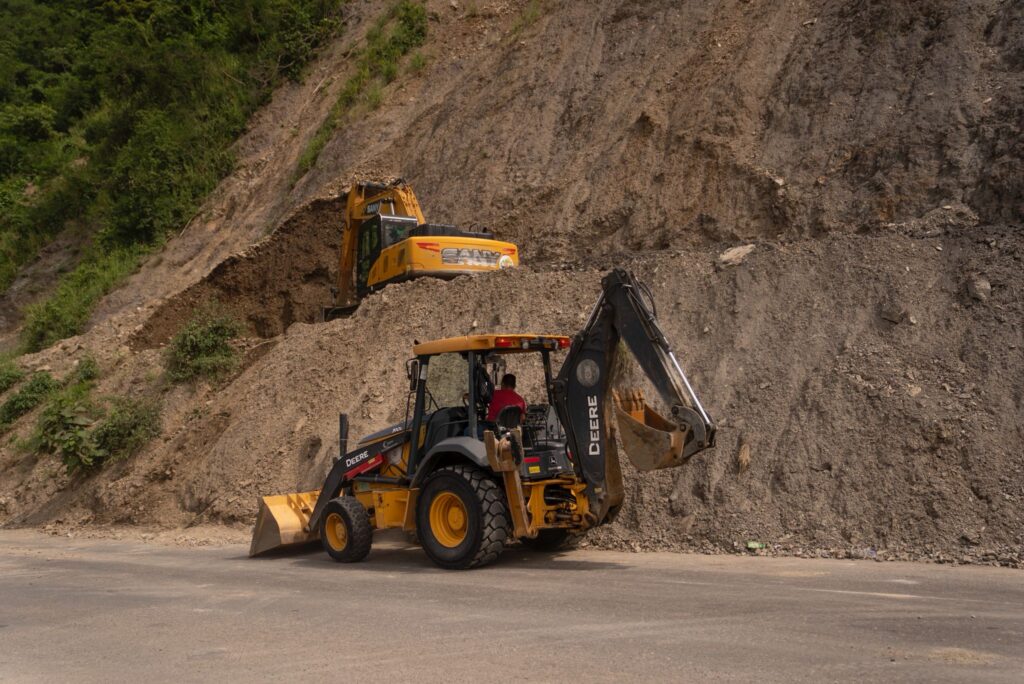 Los trabajos se llevan a cabo con maquinaria pesada como retroexcavadoras y volquetas.