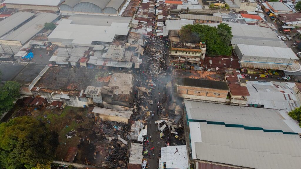 Los equipos municipales, el Cuerpo de Bomberos de San Pedro Sula, Policía Nacional, Empresa Nacional de Energía Eléctrica, trabajan de manera conjunta en apoyo a los locatarios.