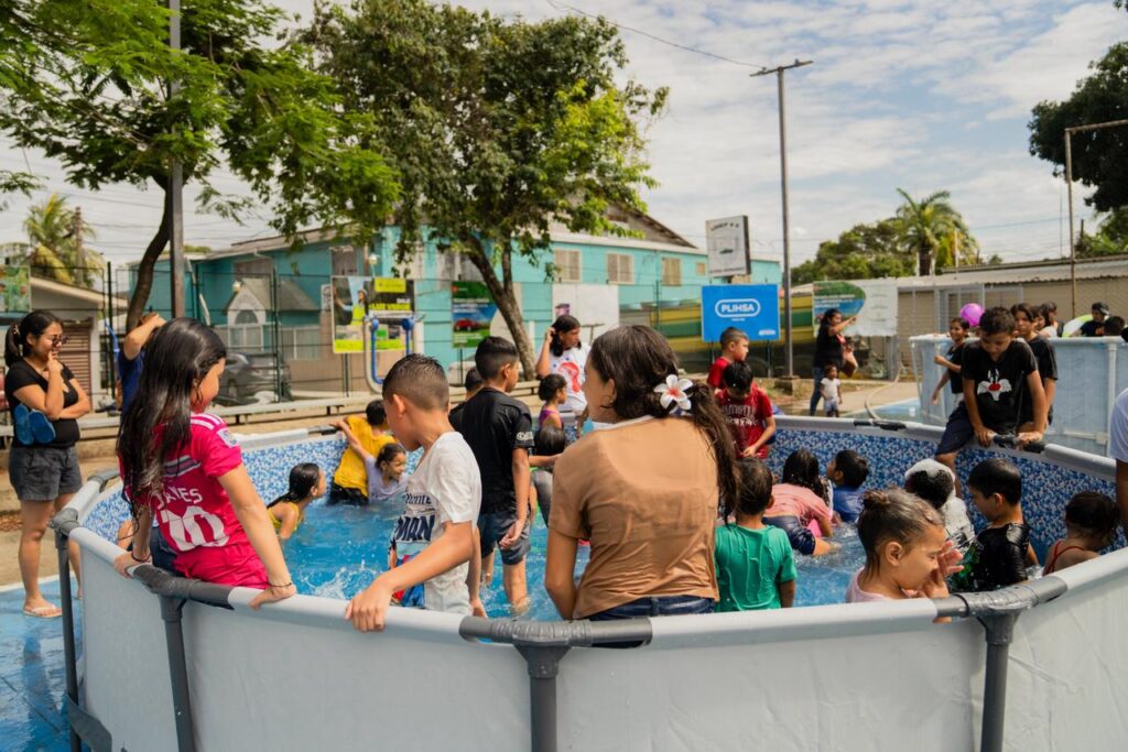 Más de 200 niños y niñas de la Rivera Hernández disfrutaron del “Día de Verano” con las piscinas que instaló la Municipalidad de San Pedro Sula