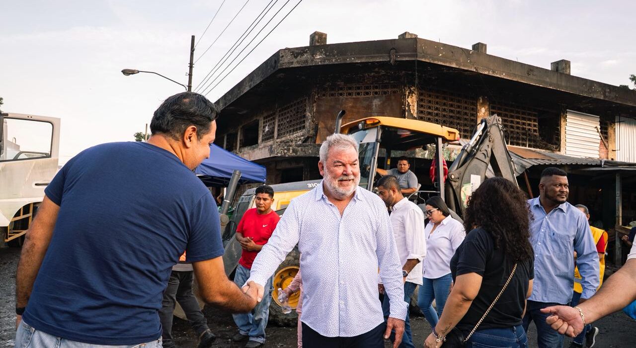 Municipalidad de San Pedro Sula inicia trabajos de demolición y limpieza del área afectada por incendio en el Mercado Medina